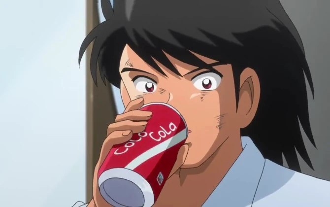 Kojiro Hyuga drinking Coco-Cola as seen in the episode 36 of Captain Tsubasa